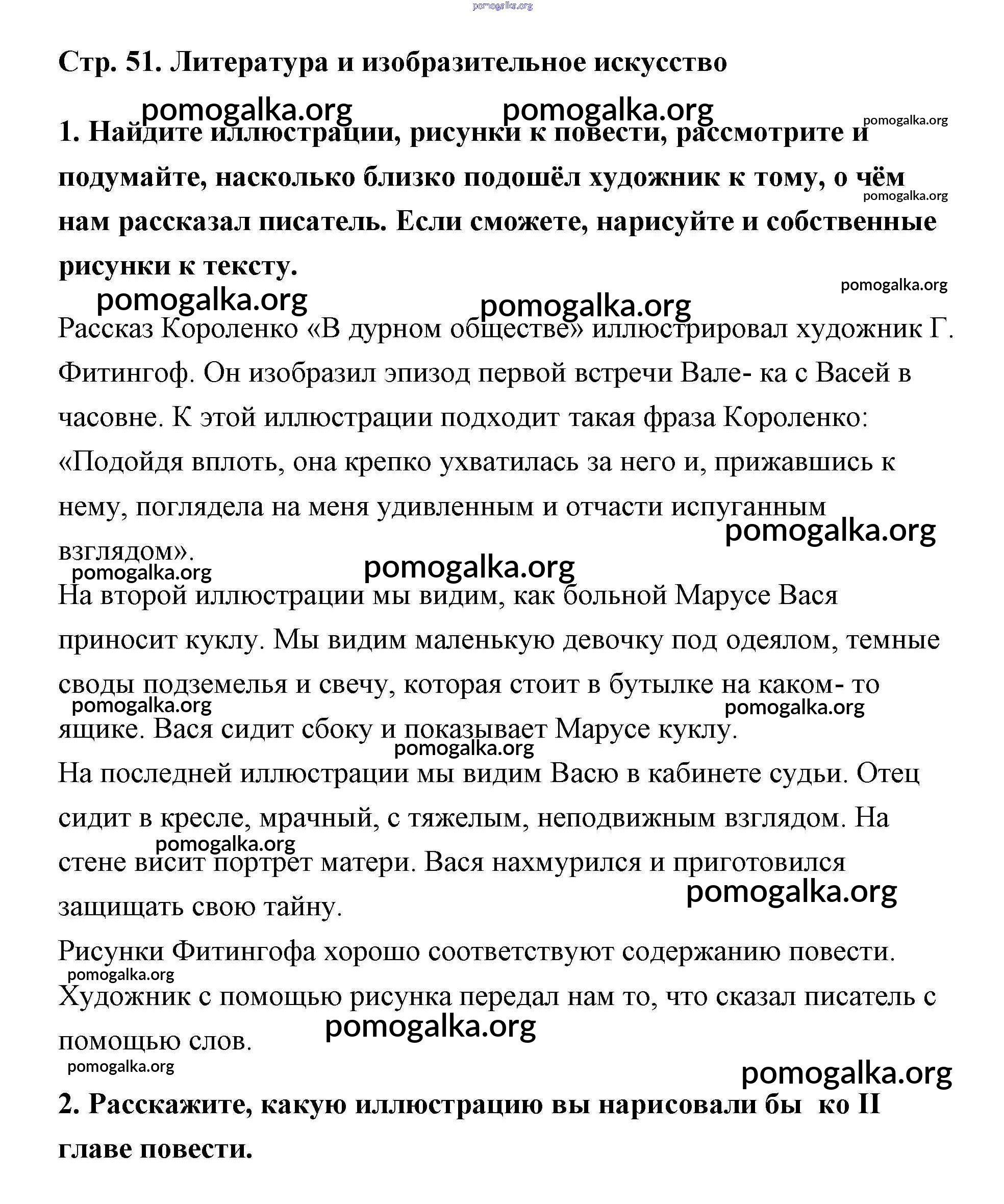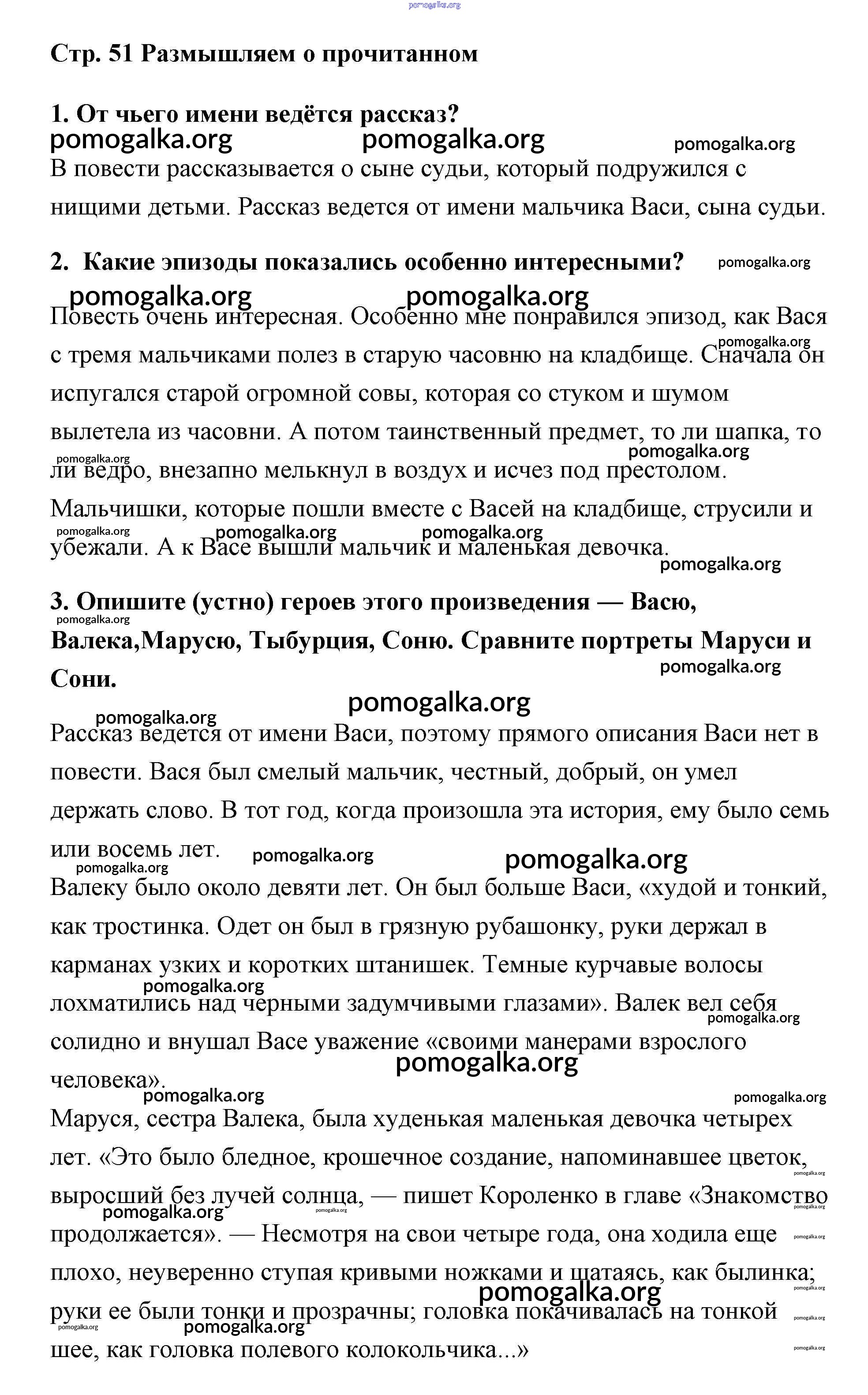 Готовые ответы - Литература 5 класс Коровина - Короленко (страница) часть 2 (тема) 51