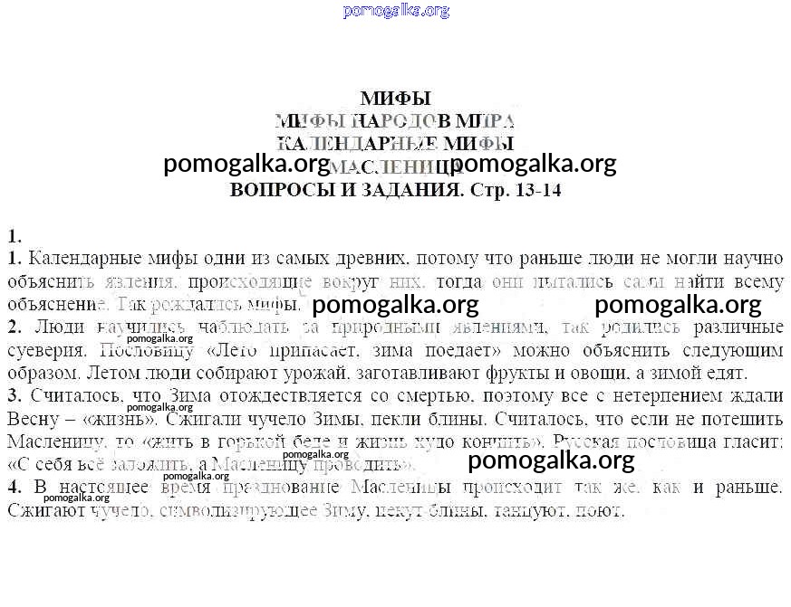 Готовые ответы - Литература 5 класс Курдюмова Т.Ф. - Вопросы и задания на стр. 13-14 часть 1 1