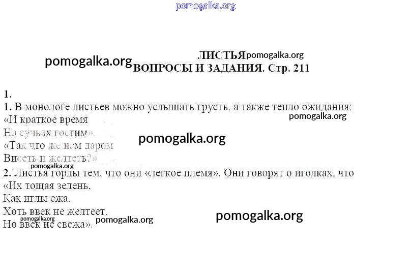 Готовые ответы - Литература 5 класс Курдюмова Т.Ф. - Вопросы и задания на стр. 211 часть 1 1