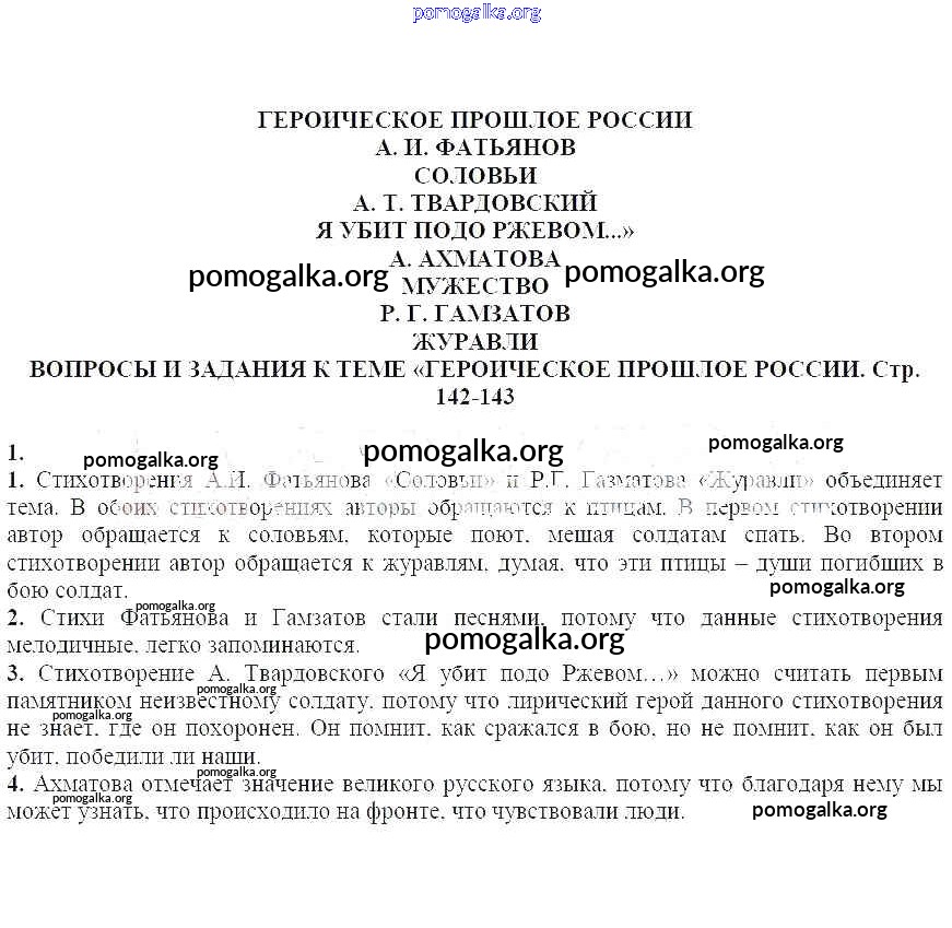 Готовые ответы - Литература 5 класс Курдюмова Т.Ф. - Вопросы и задания на стр. 142-143 часть 2 1