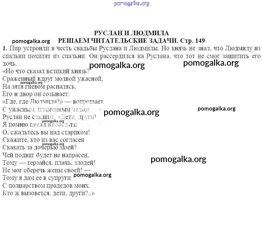 Готовые ответы - Литература 5 класс Ланин Б.А. - Решаем читательские задачи (стр.149) Руслан и Людмила 1