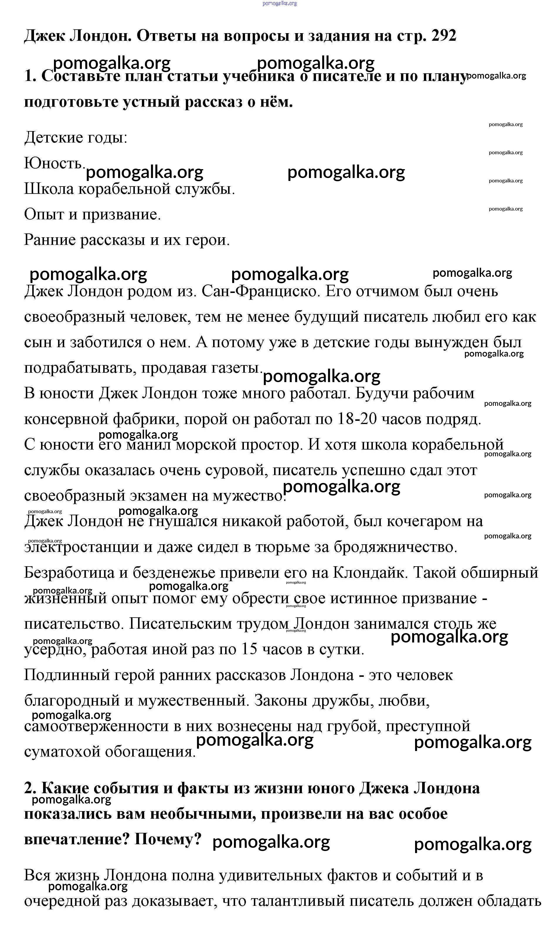 Готовые ответы - Литература 5 класс Меркин Г.С. - Джек Лондон часть 2 292