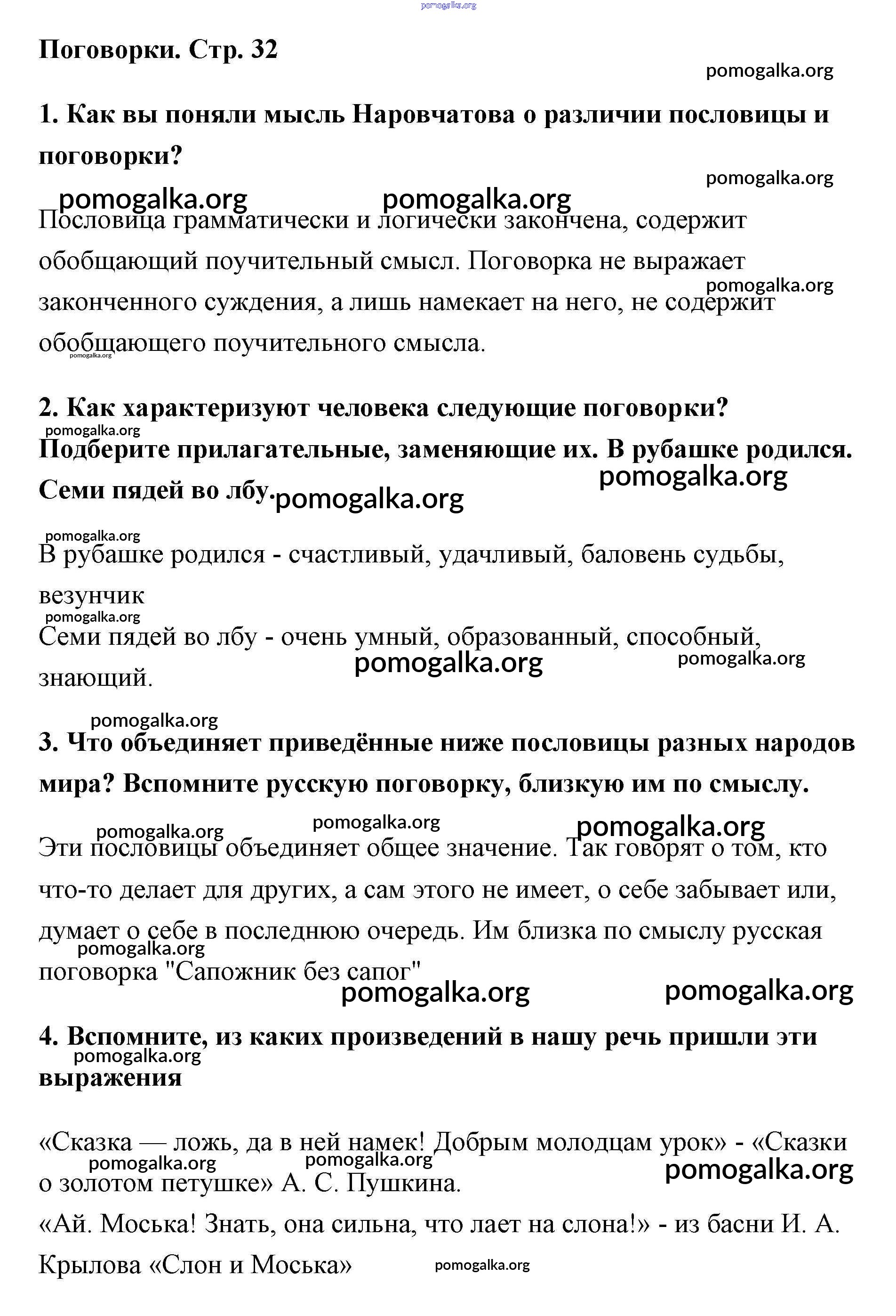 Готовые ответы - Литература 5 класс Меркин Г.С. - часть 1. страница 32