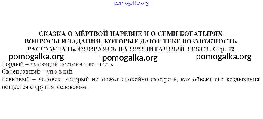 часть 1 / Сказка о мёртвой царевне и о семи богатырях А.С. Пушкина / Вопросы и задания, которые дают тебе возможность рассуждать, опираясь на прочитанный текст (стр. 42)