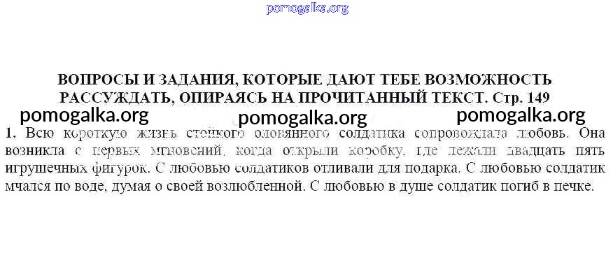Готовые ответы - Литература 5 класс Москвин Г.В. - Вопросы и задания, которые дают тебе возможность рассуждать, опираясь на прочитанный текст (стр. 149) Стойкий оловянный солдатик 1