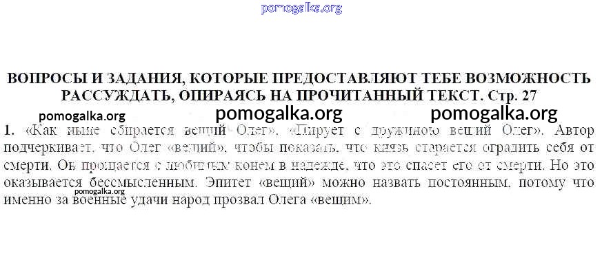 часть 2 / Песнь о вещем Олеге / Вопросы и задания, которые дают тебе возможность рассуждать, опираясь на прочитанный текст (стр. 27) / 1