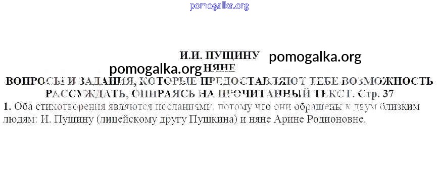Готовые ответы - Литература 5 класс Москвин Г.В. - Вопросы и задания, которые дают тебе возможность рассуждать, опираясь на прочитанный текст (стр. 37) И.И. Пущину. Няне 1