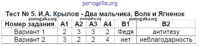 Готовые ответы - Литература 6 класс контрольно-измерительные материалы Королева Н.С. - тест 5