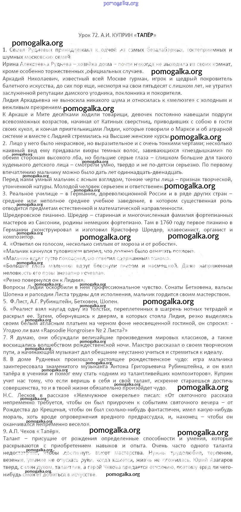 Готовые ответы - Литература 6 класс рабочая тетрадь Соловьева Ф.Е. (к уч. Меркина) - урок № 72