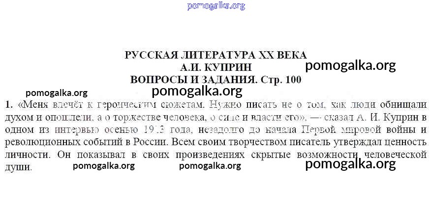 Готовые ответы - Литература 6 класс Чертов В.Ф. - Вопросы и задания А. И. Куприн 1