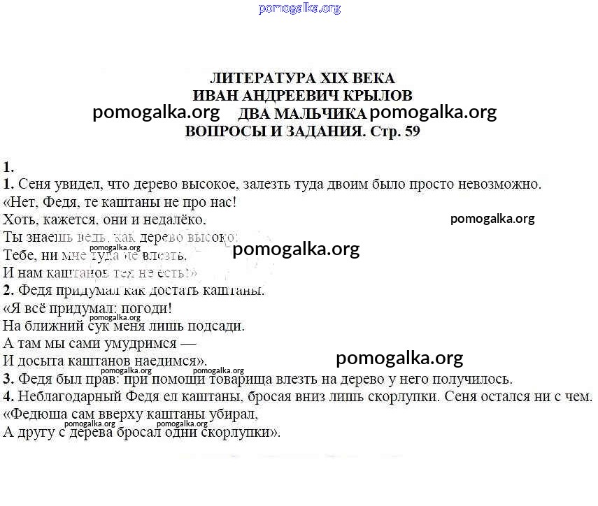 Готовые ответы - Литература 6 класс Курдюмова Т.Ф. - Вопросы и задания Литература XIX века. Иван Андреевич Крылов. Два мальчика 1
