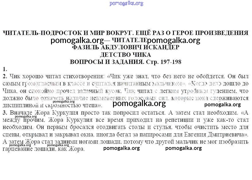 Готовые ответы - Литература 6 класс Курдюмова Т.Ф. - Вопросы и задания Фазиль Абдулович Искандер. Детство Чика 1