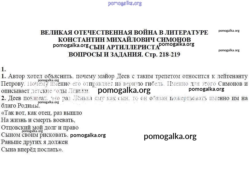 Готовые ответы - Литература 6 класс Курдюмова Т.Ф. - Вопросы и задания Константин Михайлович Симонов. Сын артиллериста 1