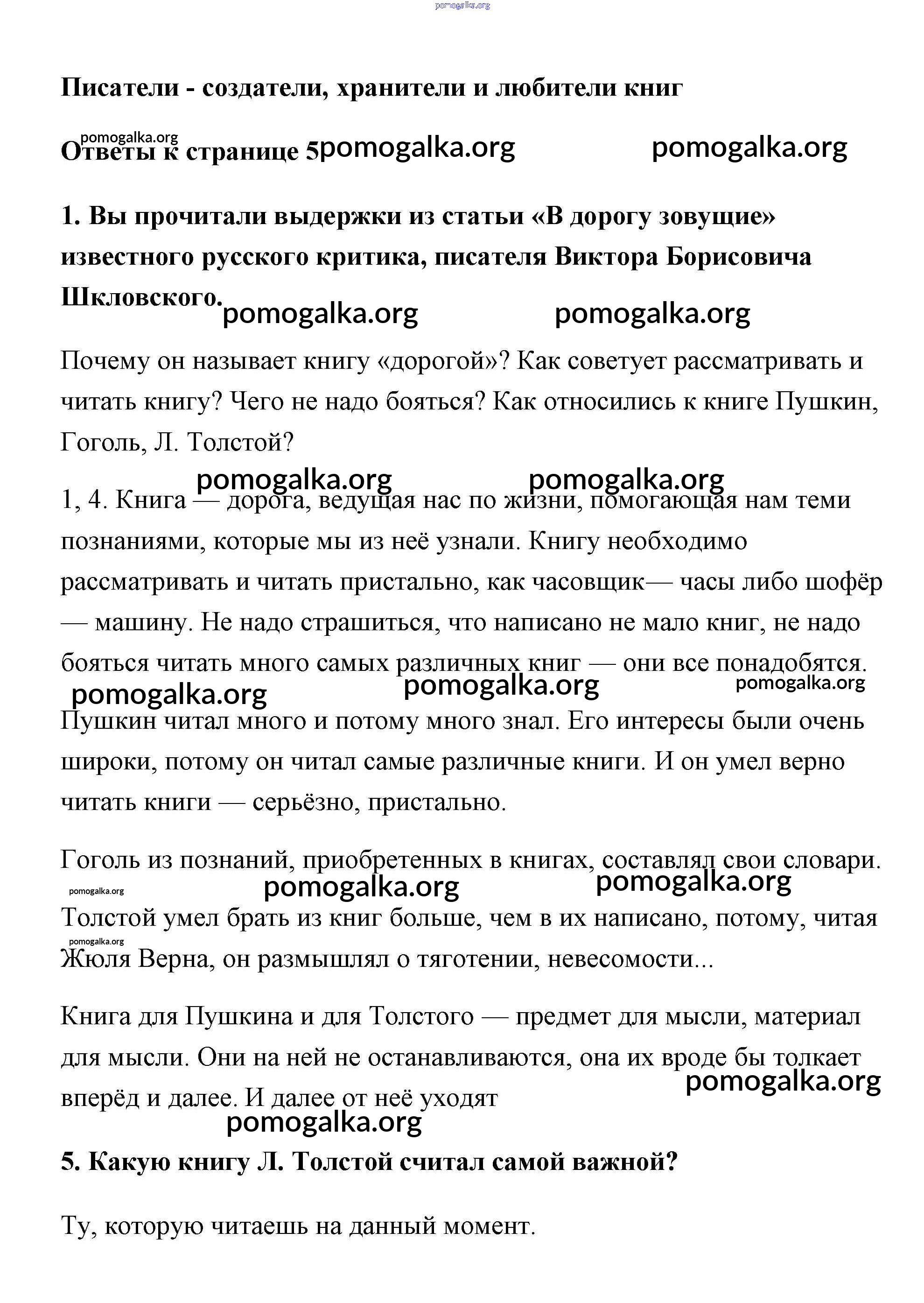 Готовые ответы - Литература 6 класс Коровина - Писатели создатели часть 1 (старое 15-е издание) 5