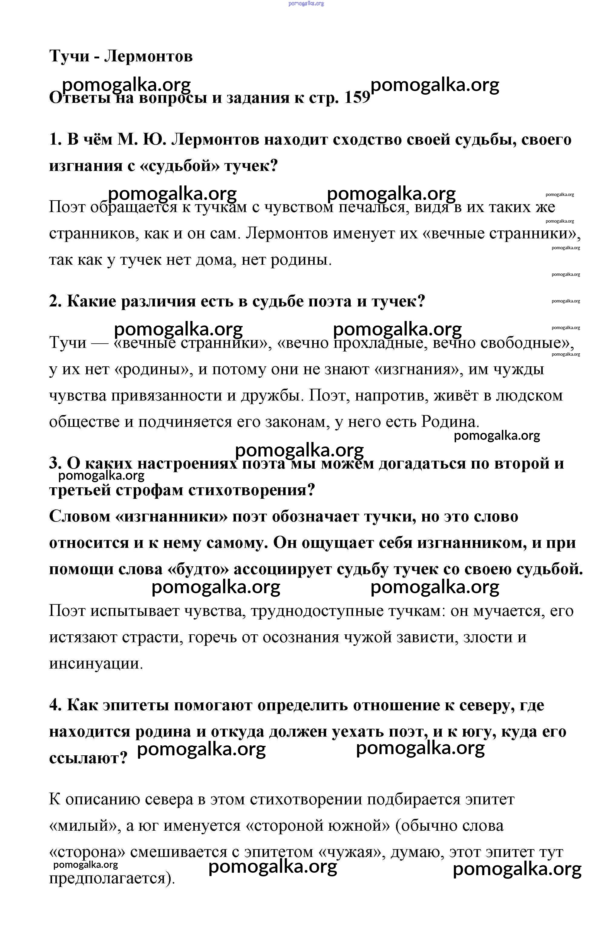 Готовые ответы - Литература 6 класс Коровина - Лермонтов часть 1 (старое 15-е издание) 159