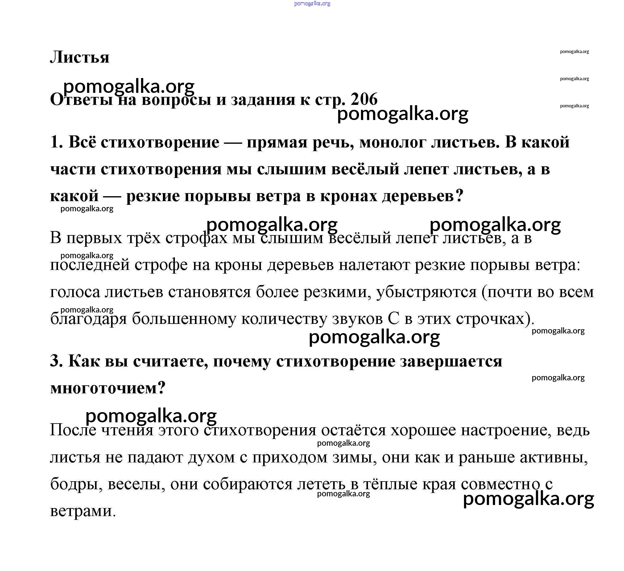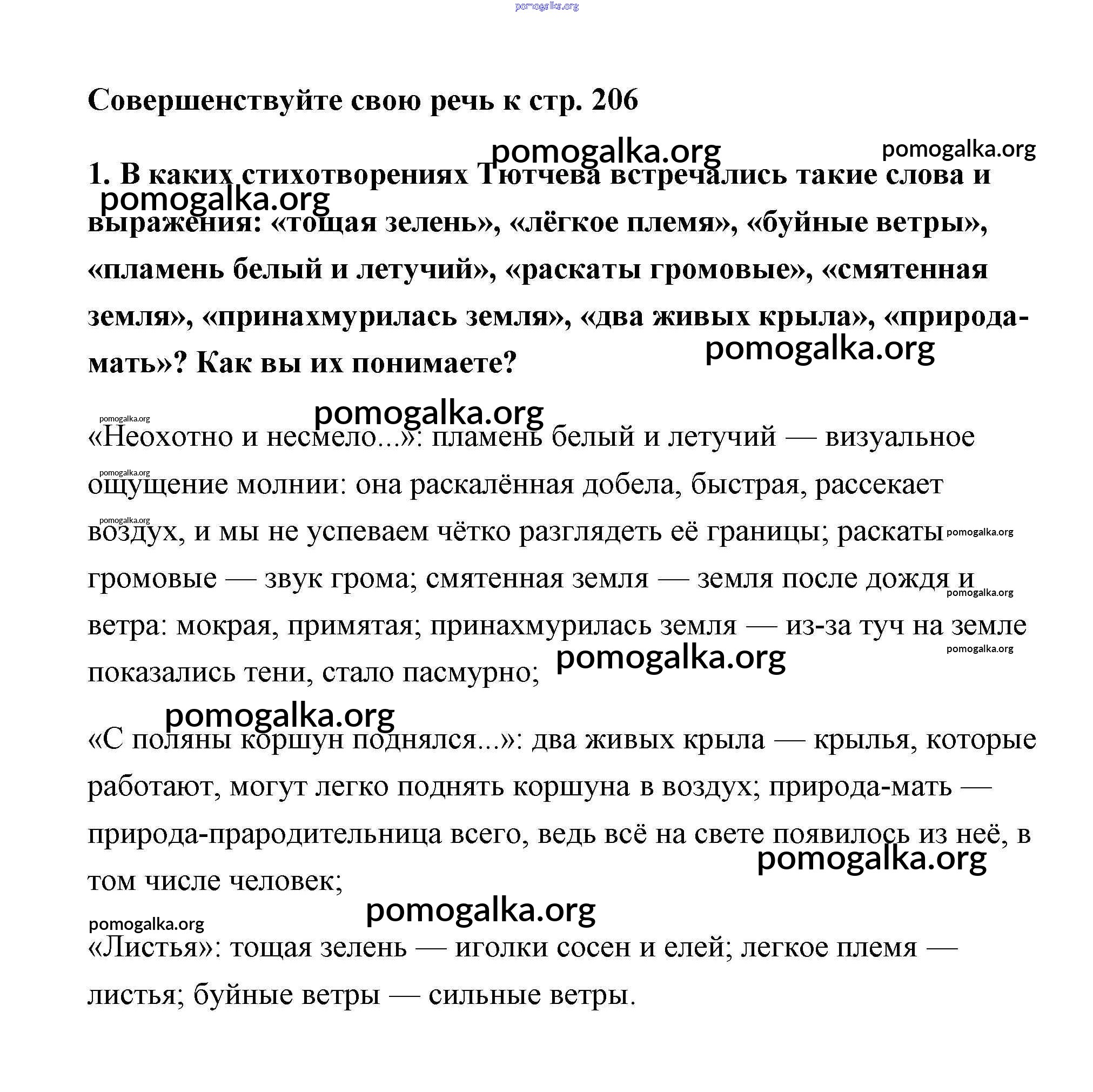 Готовые ответы - Литература 6 класс Коровина - Тютчев часть 1 (старое 15-е издание) страница 206