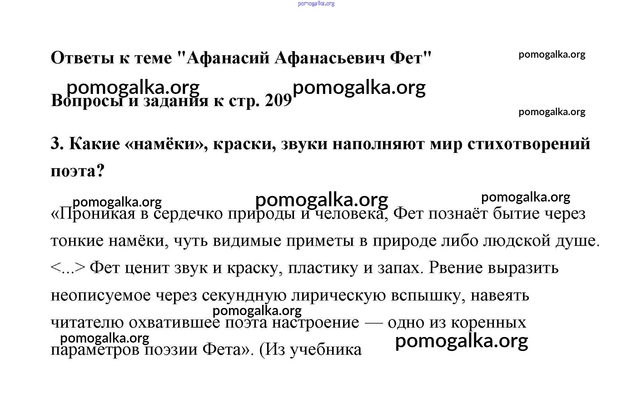 Готовые ответы - Литература 6 класс Коровина - Фет часть 1 (старое 15-е издание) страница 209