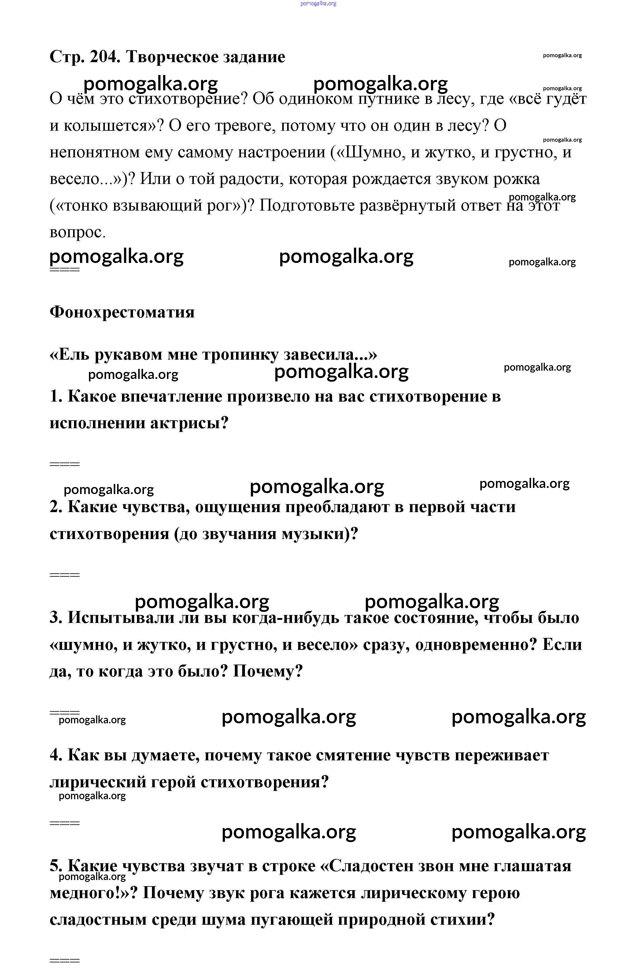 Готовые ответы - Литература 6 класс Коровина - Фет часть 1 (новое 16-е издание) страница 204