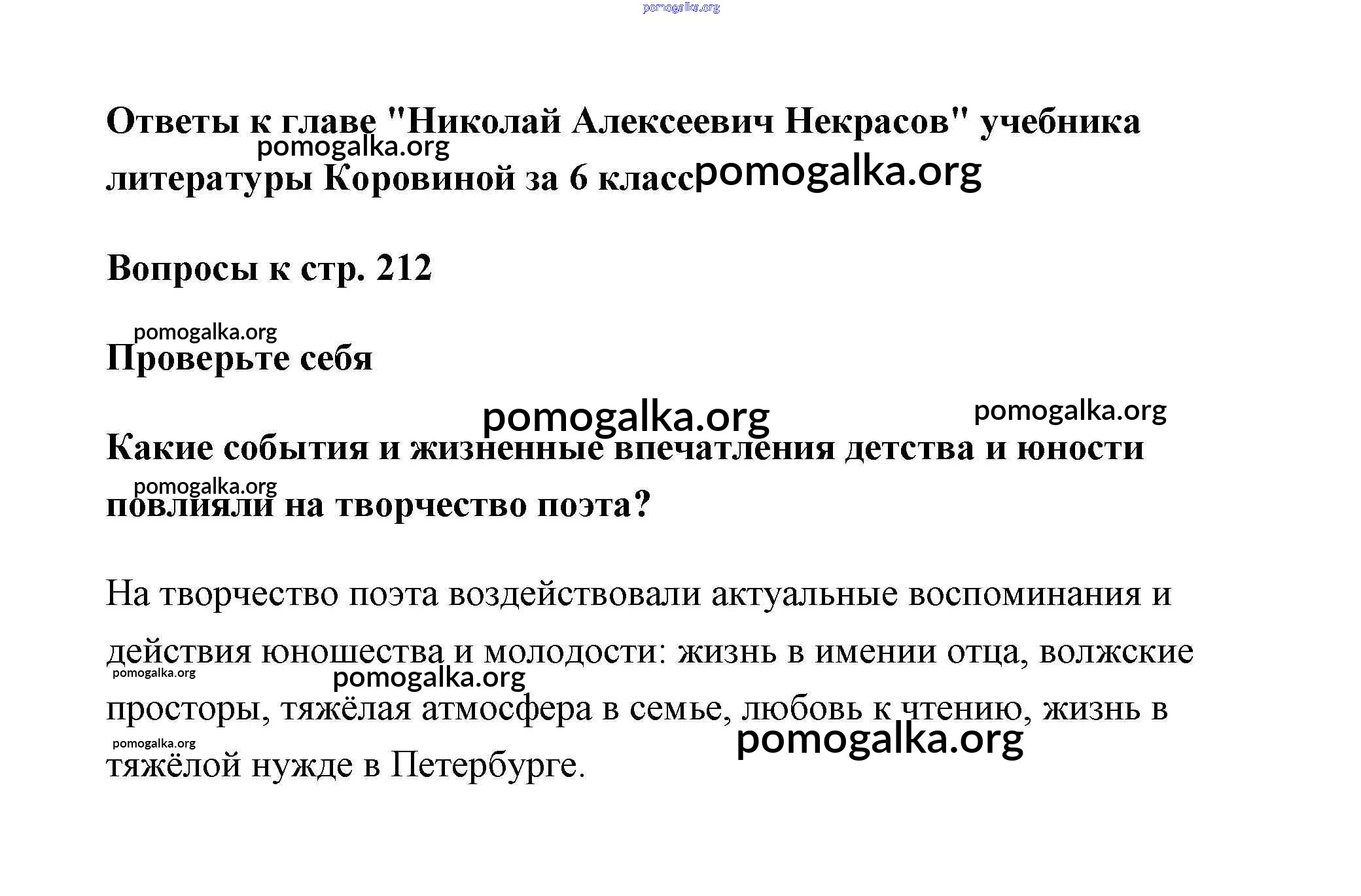 Готовые ответы - Литература 6 класс Коровина - Некрасов часть 1 (новое 16-е издание) страница 212