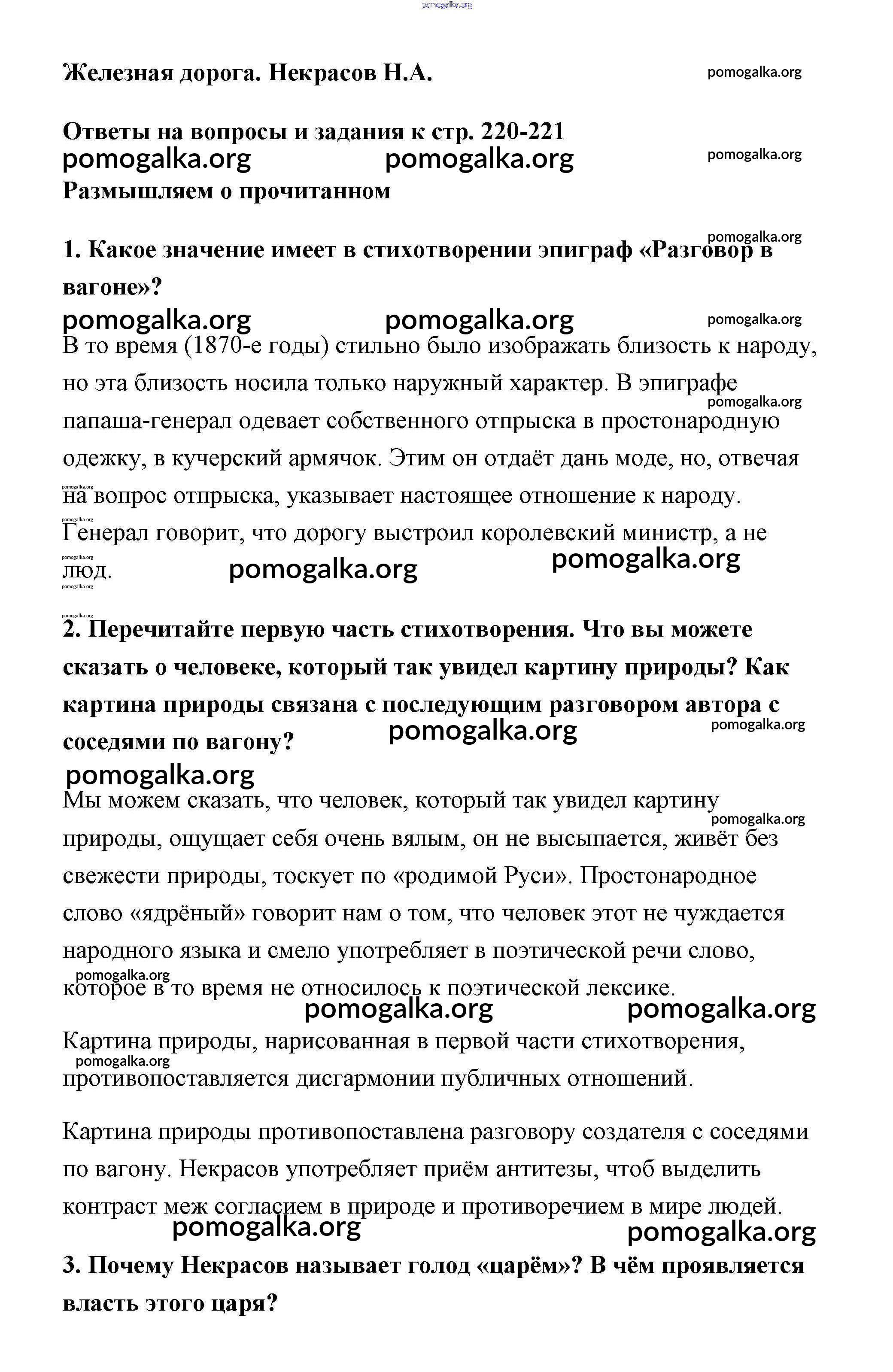 Готовые ответы - Литература 6 класс Коровина - Некрасов часть 1 (новое 16-е издание) страница 220-221