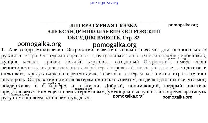Готовые ответы - Литература 6 класс Ланин Б.А. - Обсудим вместе Литературная сказка. Александр Николаевич Островский 1
