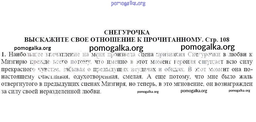Готовые ответы - Литература 6 класс Ланин Б.А. - Выскажите свое отношение к прочитанному Снегурочка 1