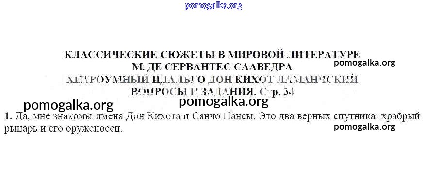Готовые ответы - Литература 7 класс Чертов В.Ф. - Вопросы и задания М. Де Сервантес Сааведра. Хитроумный идальго дон Кихот Ламанчский 1