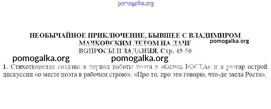 Готовые ответы - Литература 7 класс Чертов В.Ф. - Вопросы и задания Необычайное приключение, бывшее с Владимиром Маяковским летом на даче 1