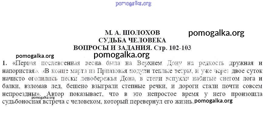 Готовые ответы - Литература 7 класс Чертов В.Ф. - Вопросы и задания М. А. Шолохов. Судьба человека 1