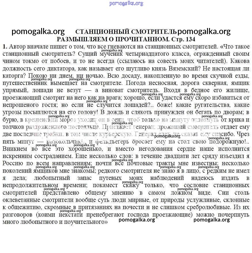 Готовые ответы - Литература 7 класс Коровина В.Я. - Размышляем о прочитанном Станционный смотритель 1