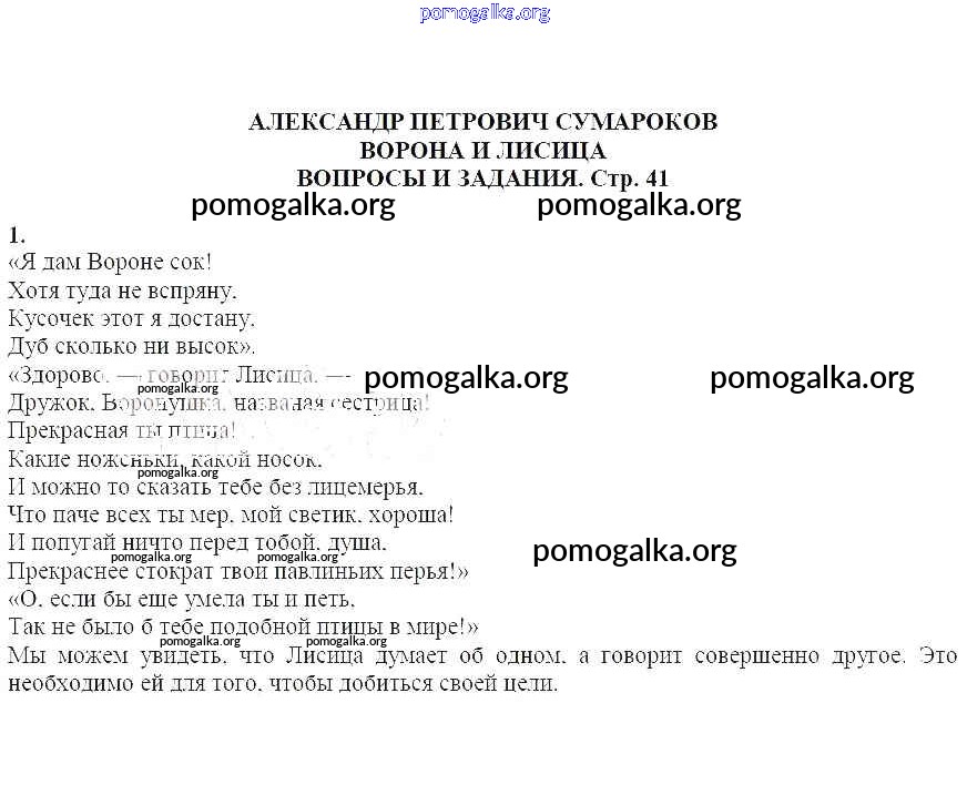 Готовые ответы - Литература 7 класс Курдюмова Т.Ф. - Вопросы и задания Александр Петрович Сумароков. Ворона и лисица 1