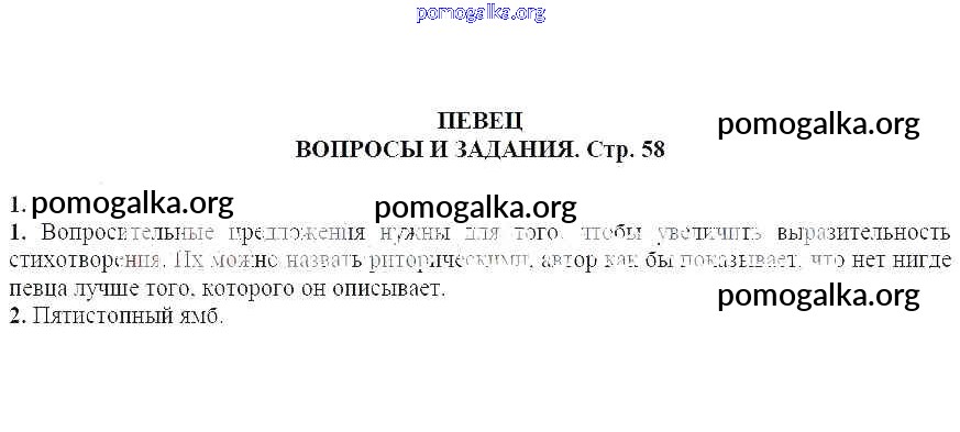Готовые ответы - Литература 7 класс Курдюмова Т.Ф. - Вопросы и задания Певец 1
