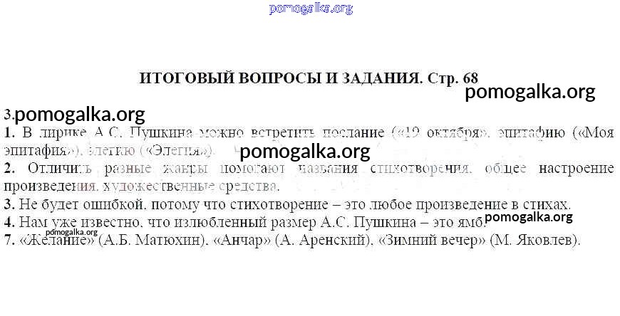 Готовые ответы - Литература 7 класс Курдюмова Т.Ф. - Итоговые вопросы и задания часть 1 3
