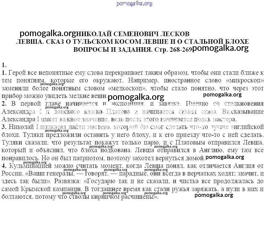Готовые ответы - Литература 7 класс Курдюмова Т.Ф. - Вопросы и задания Николай Семенович Лесков. Левша. Сказ о тульском косом левше и о стальной блохе 1