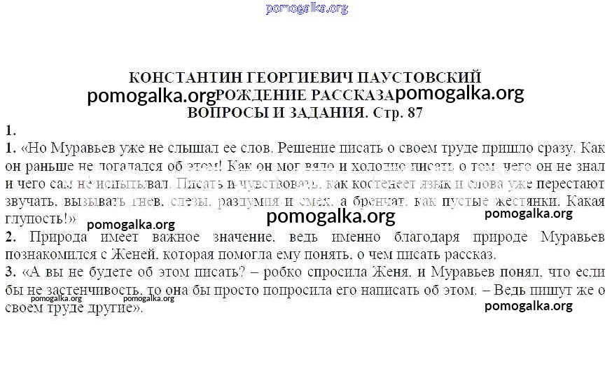 Готовые ответы - Литература 7 класс Курдюмова Т.Ф. - Вопросы и задания Константин Георгиевич Паустовский. Рождение рассказа 1