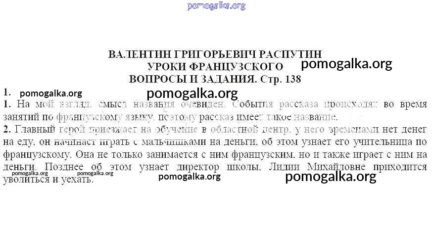Готовые ответы - Литература 7 класс Курдюмова Т.Ф. - Вопросы и задания Валентин Григорьевич Распутин. Уроки французского 1