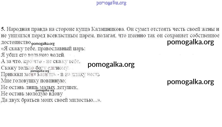 Готовые ответы - Литература 7 класс Ланин Б.А. - Решаем читательские задачи Песня про царя Ивана Васильевича, молодого опричника и удалого купца Калашникова 5