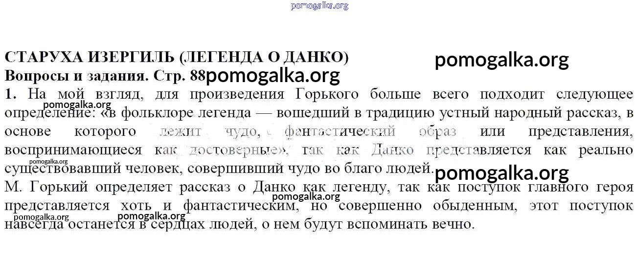 Готовые ответы - Литература 7 класс Меркин Г.С. - Вопросы и задания Старуха Изергиль (Легенда о Данко) 1