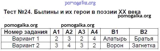 Готовые ответы - Литература 8 класс КИМ Зубова Е.Н. - тест 24