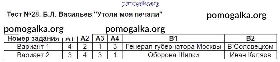 Готовые ответы - Литература 8 класс КИМ Зубова Е.Н. - тест 28