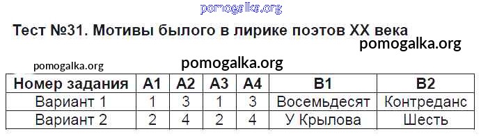 Готовые ответы - Литература 8 класс КИМ Зубова Е.Н. - тест 31