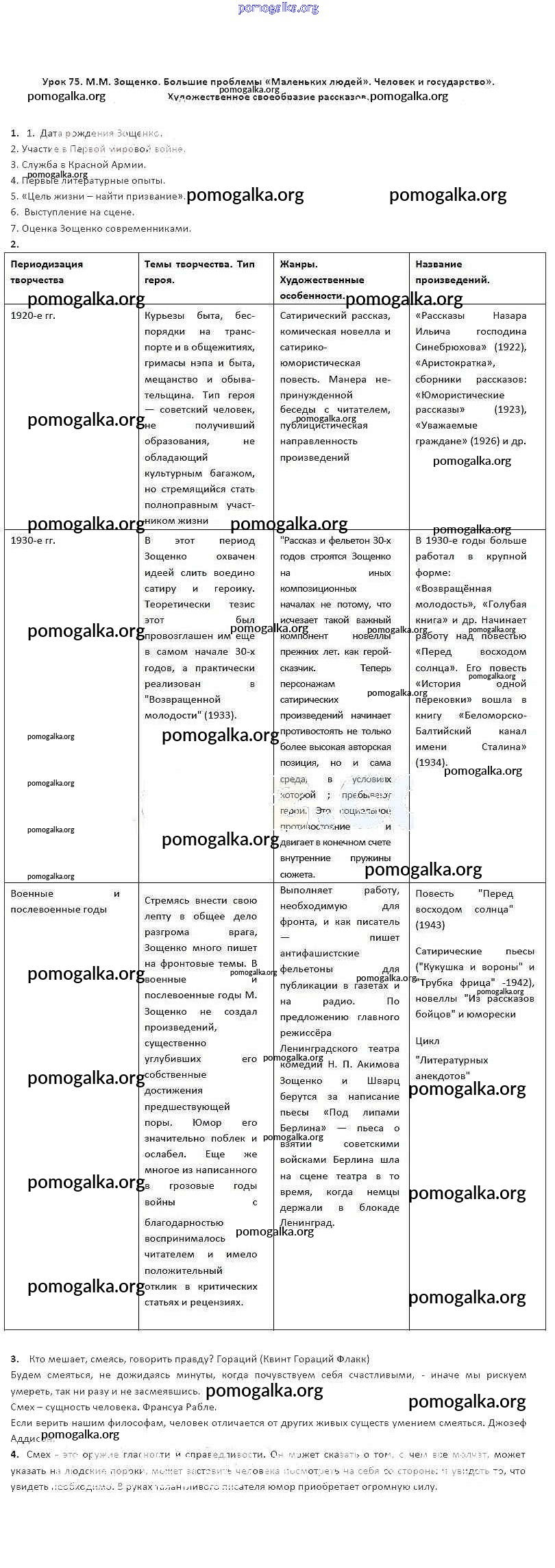 Готовые ответы - Литература 8 класс рабочая тетрадь Соловьева Ф.Е. - урок № 75