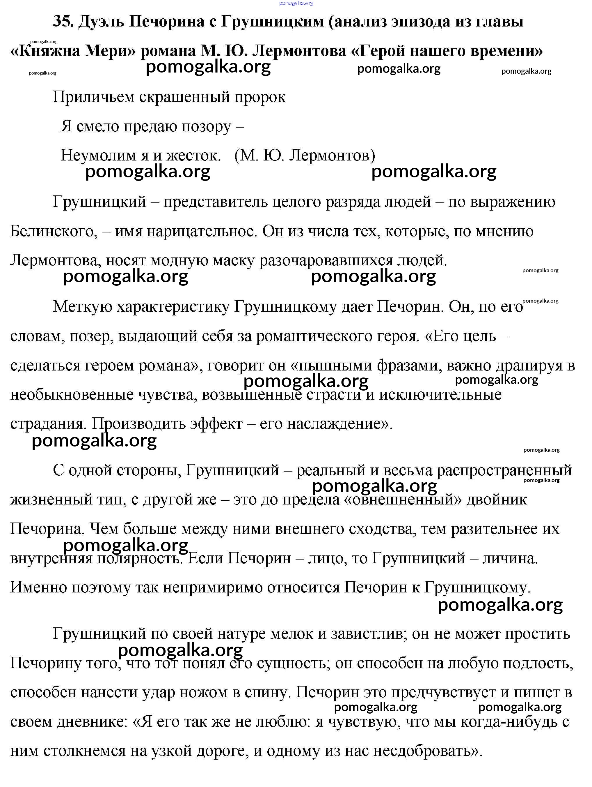 35. Дуэль Печорина с Грушницким (анализ эпизода из главы «Княжна Мери» романа М. Ю. Лермонтова «Герой нашего времени»
