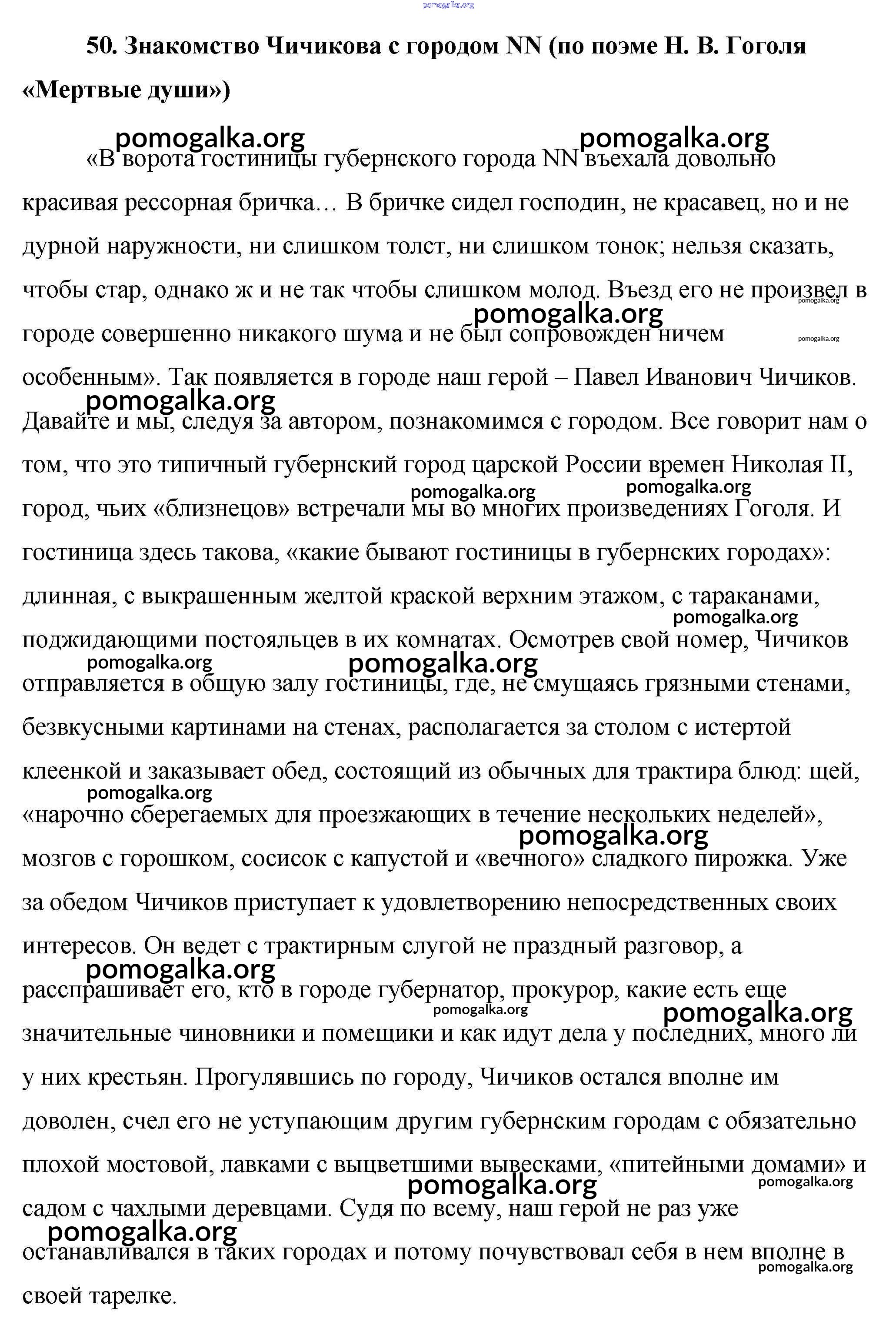 50. Знакомство Чичикова с городом NN (по поэме Н. В. Гоголя «Мертвые души»)