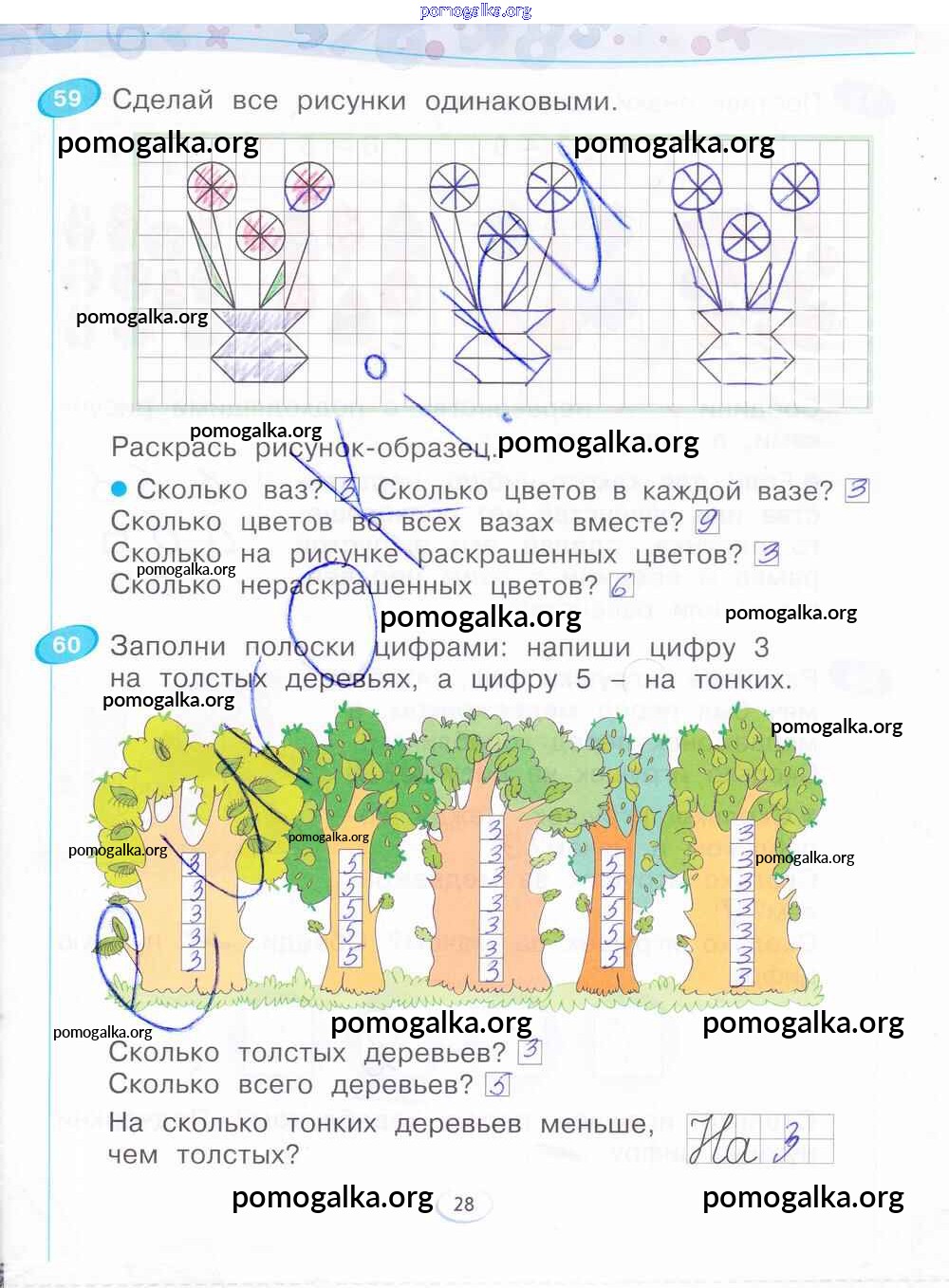 Готовые ответы - Математика 1 класс рабочая тетрадь Бененсон Е.П. - часть 1. страница 28