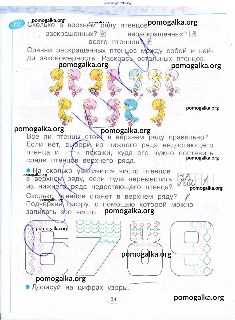 Готовые ответы - Математика 1 класс рабочая тетрадь Бененсон Е.П. - часть 1. страница 34