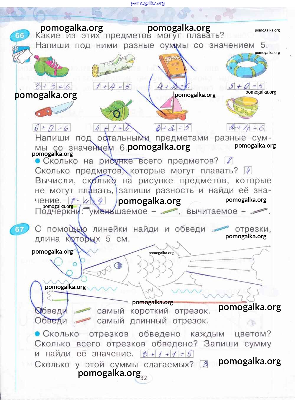Готовые ответы - Математика 1 класс рабочая тетрадь Бененсон Е.П. - часть 3. страница 32