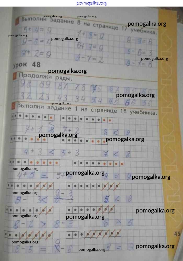 Готовые ответы - Математика 1 класс рабочая тетрадь Демидова Т.Е. - страница 45