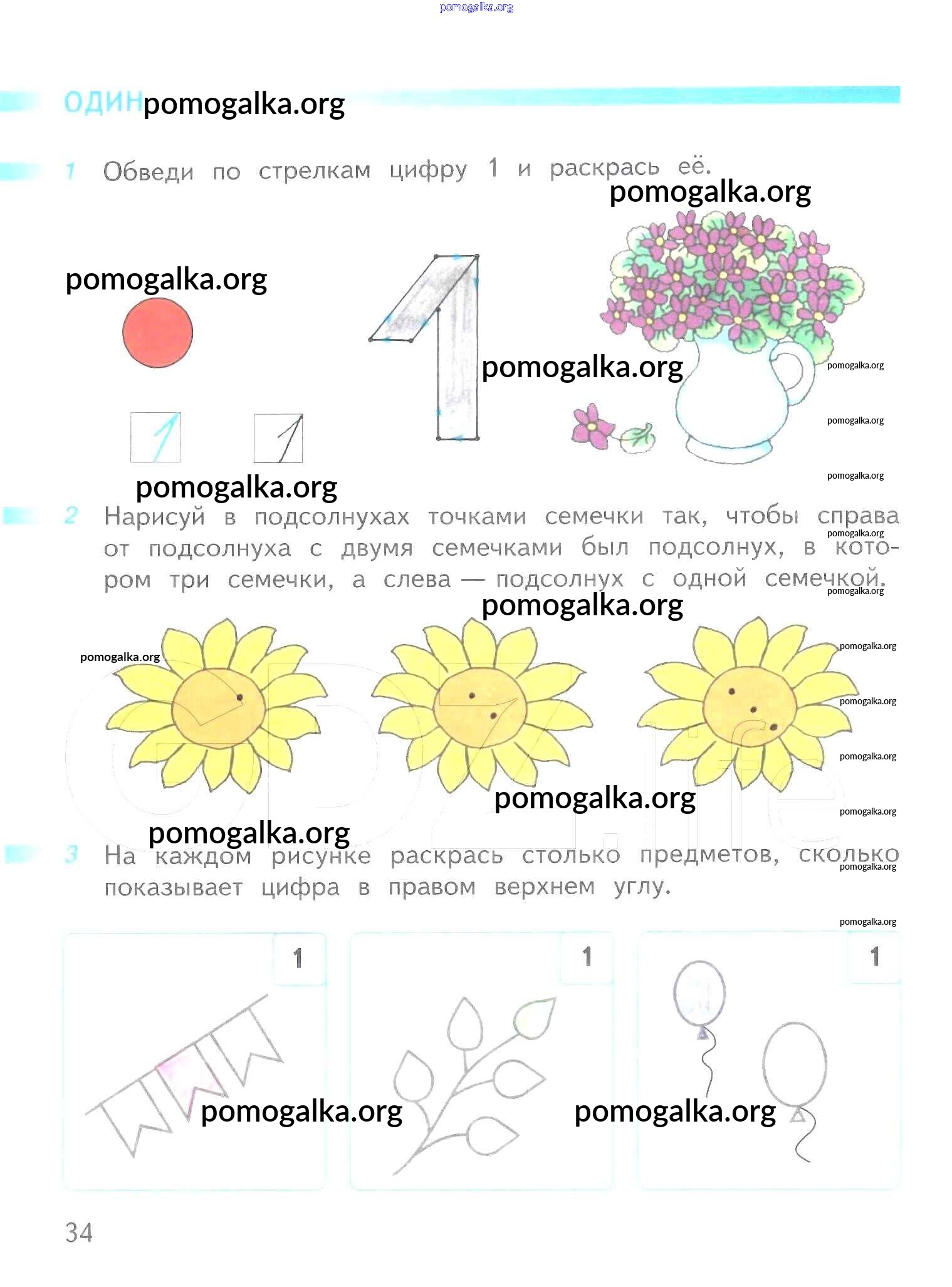 Готовые ответы - Математика 1 класс рабочая тетрадь Дорофеев Г.В. - часть 1. страница 34