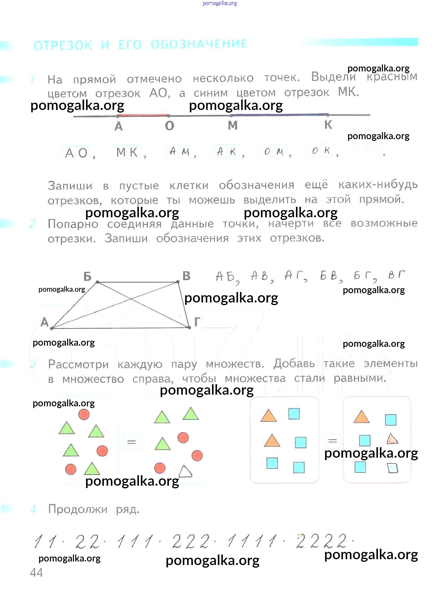 Готовые ответы - Математика 1 класс рабочая тетрадь Дорофеев Г.В. - часть 1. страница 44